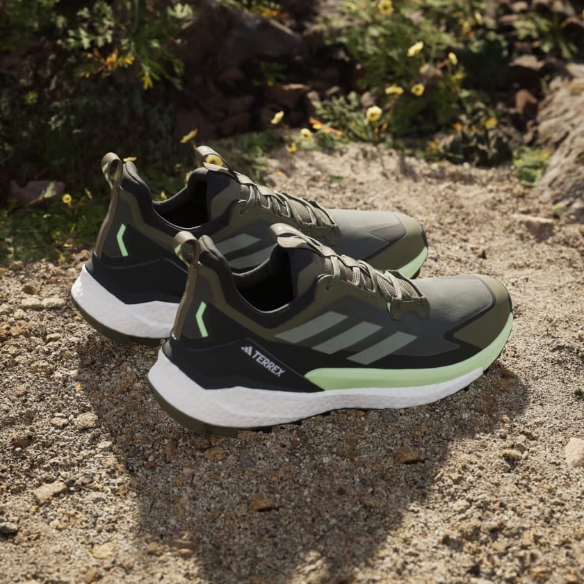 The Terrex Free Hiker 2.0 Low is a hiker's dream, fusing comfort and performance for regular-fit trekking footwear. It features a breathable synthetic textile upper, abrasion-resistant mesh, and an easy step-in gusset tongue that adapts to foot expansion while hiking. The Boost midsole offers superior cushioning whilst the outdoor-specific EVA frame stabilises lateral movement. Conquer any trail with the Continental™ Rubber outsole for excellent grip and GORE-TEX technology for all-weather readiness.