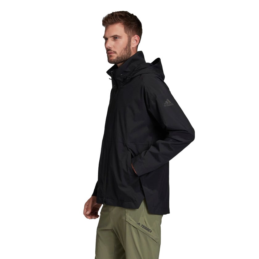When the rain just won't slow down, pull on the adidas RAIN.RDY Traveer Jacket. RAIN.RDY seals out wet weather, so you can get where you need to go. A mesh lining helps with ventilation and a media pocket secures your phone. Pack away the hood when the rain stops for a clean look.