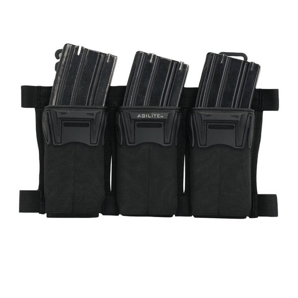 The Agilite Pincer Placard™ revolutionizes magazine carriers with its innovative design, providing seamless one-handed magazine access and solid retention. This hook-backed elastic placard securely holds three 5.56 magazines, making it ideal for tactical use. Say goodbye to the common flaws of traditional elastic pouches - the Patent Pending funneled magwell design guides magazines smoothly for snag-free, one-handed reinsertion. Enjoy peace of mind with reliable magazine retention, ensuring your mags stay put no matter the activity. Compatible with various plate carriers, this placard is versatile and adjustable for a customized fit. Crafted from durable materials, including Mil-Spec Squadron fabric, this lightweight carrier is designed for rugged performance. Gear up with the Agilite Pincer Placard™ for a premium magazine-carrying experience.