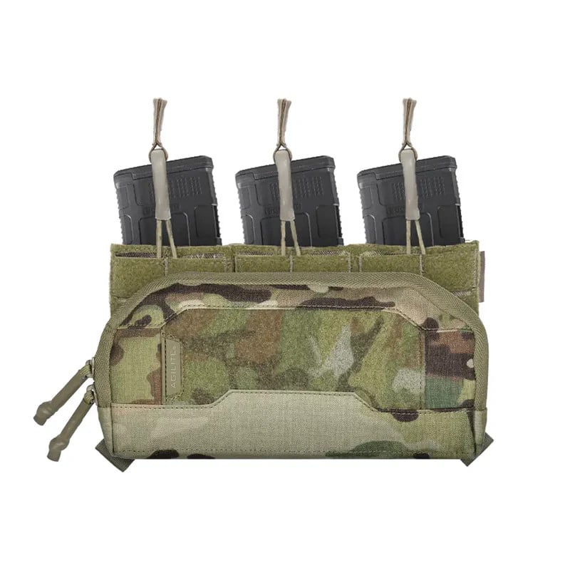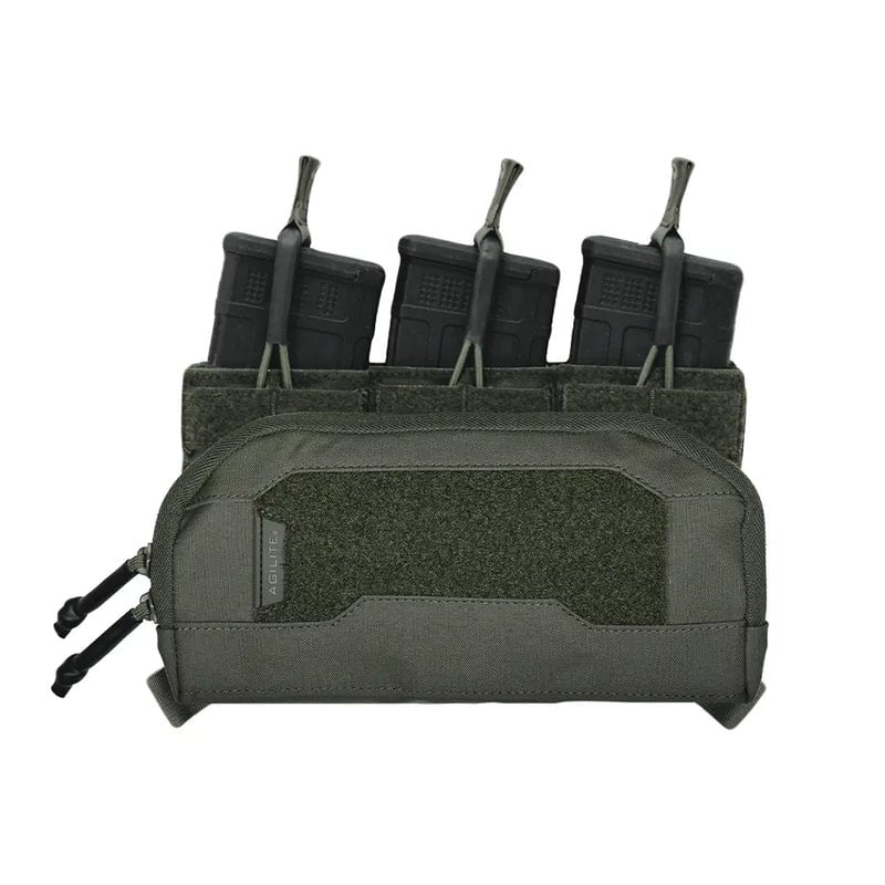 Low-profile, wide admin pouch built for organized, rapid access with zero bulk or sag. Optimized for mounting on the front of your AG3 Mag Pouch, the Pincer Placard’s second-layer MOLLE, any other MOLLE-equipped mag pouch, the side of your cummerbund, or the back of your plate carrier or Micro MAP.