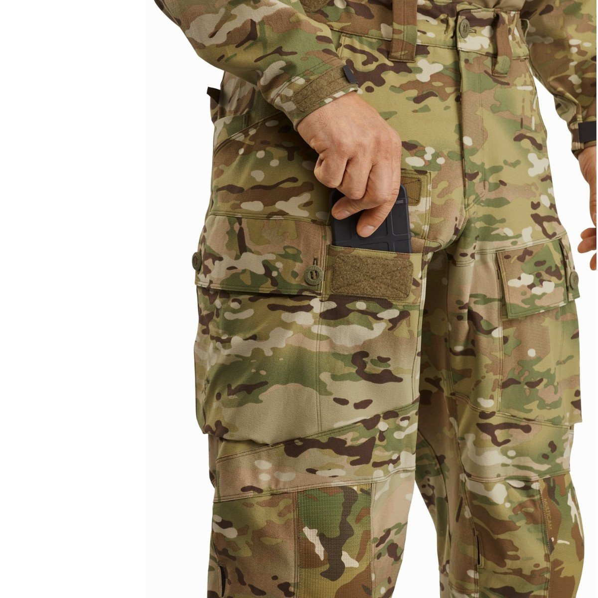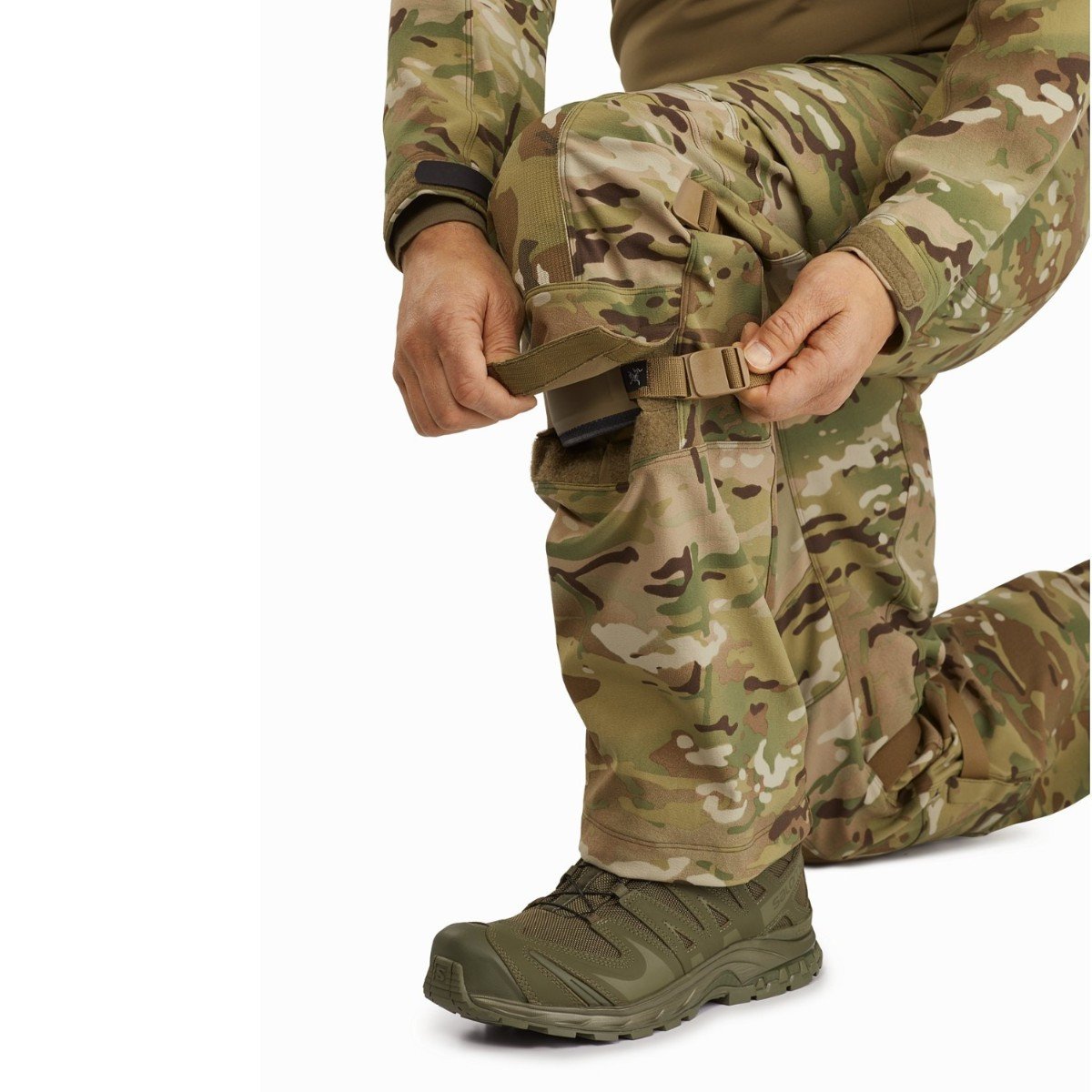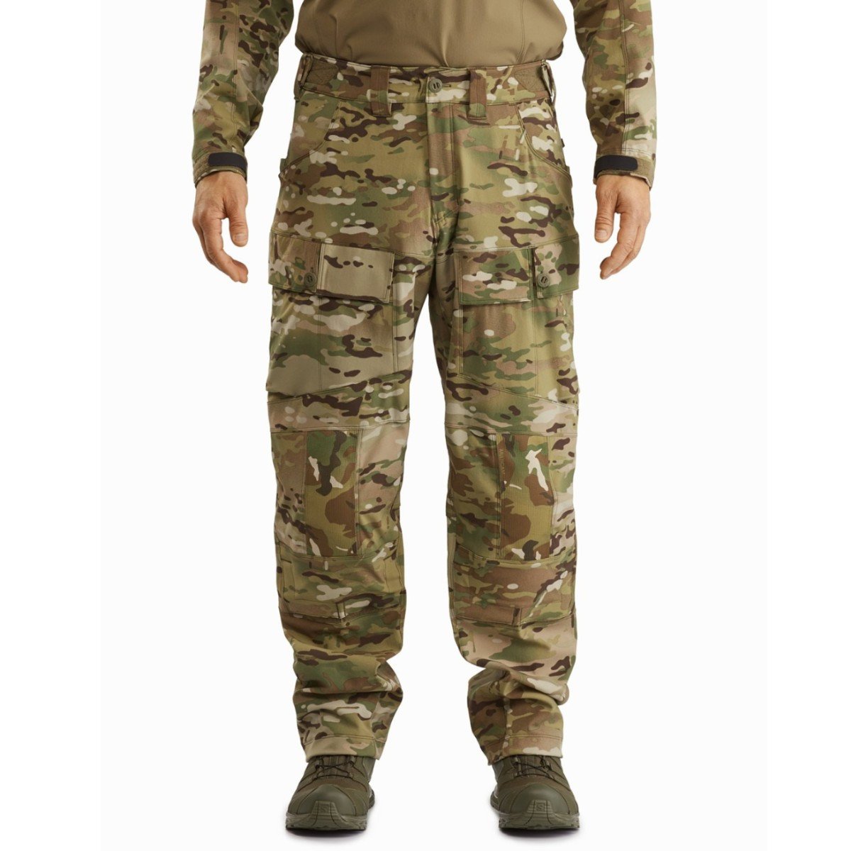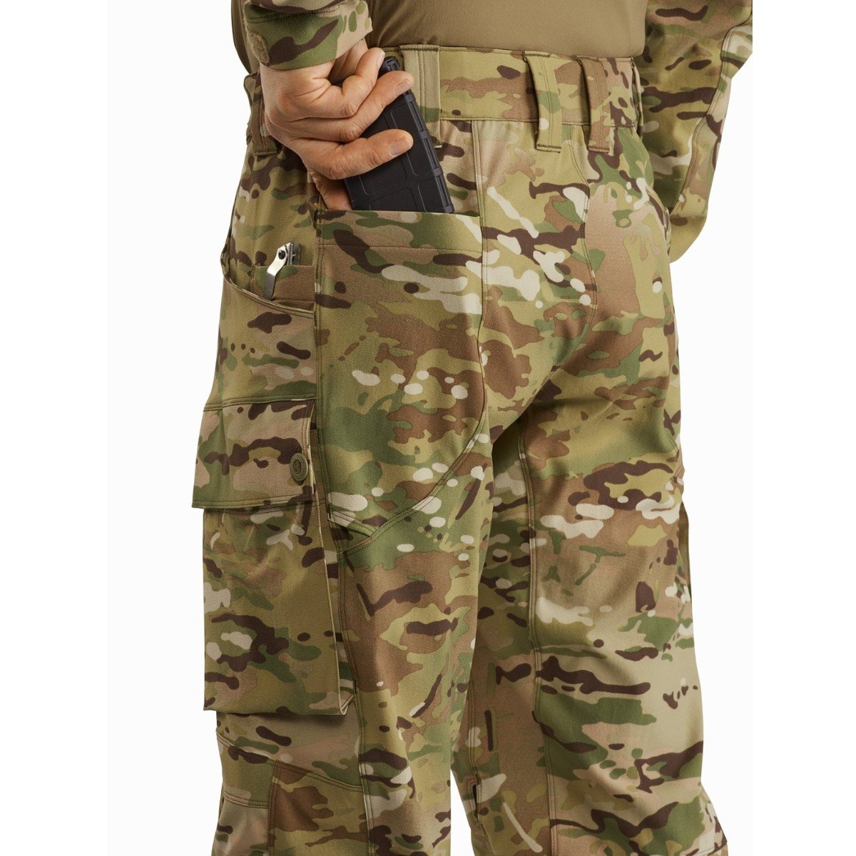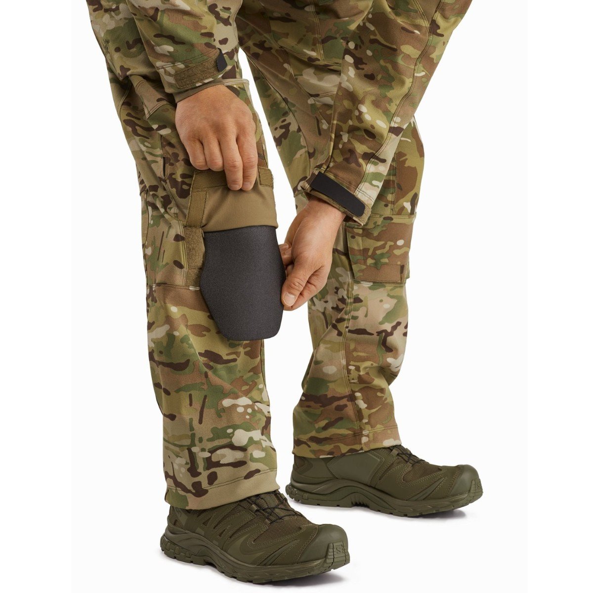 Internal knee cap pockets allowing for the integration of inclusive removable soft knee pads or fully compatible (separately purchased) LEAF Combat Knee Caps (MPN 24873)