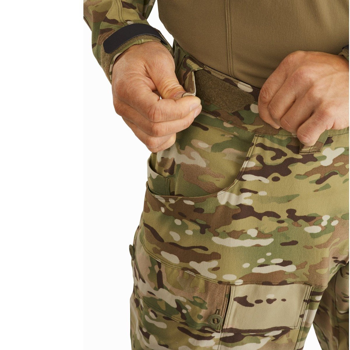 Retention loops (sewn into waistline) allowing for the tying off of personal items