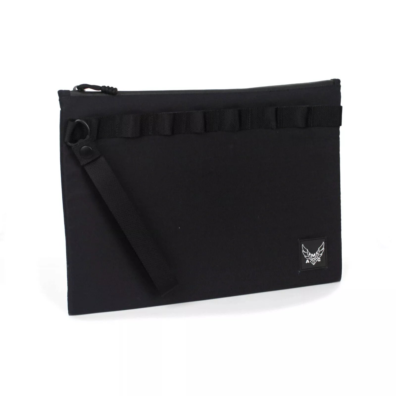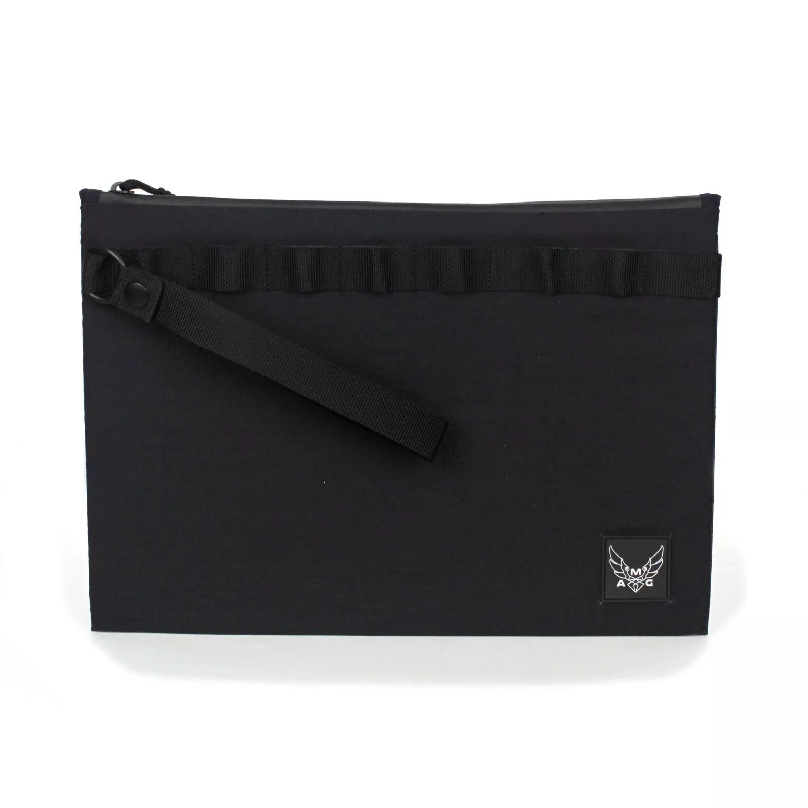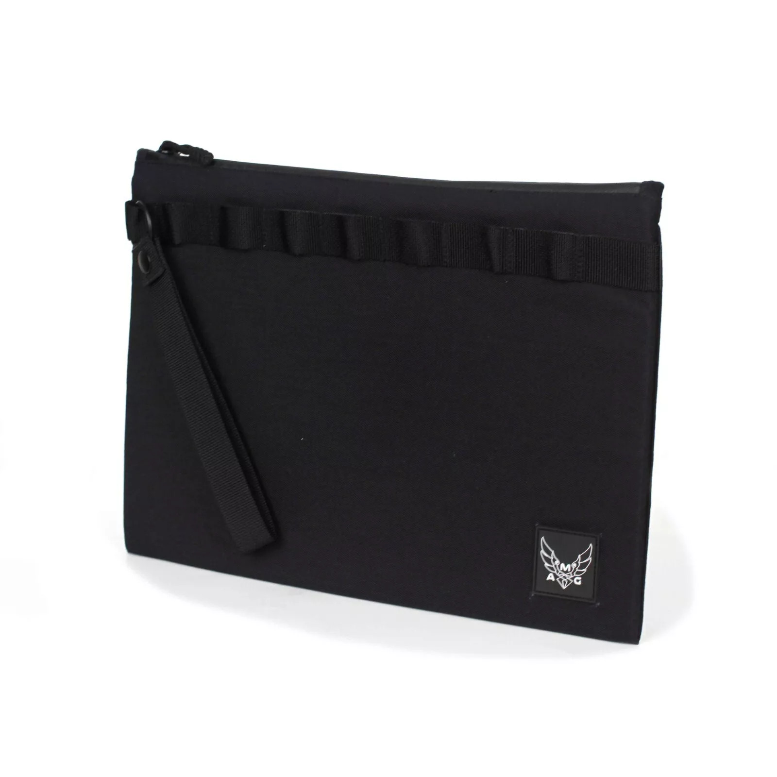 AMG’s Ragussa-L accommodates your larger everyday carry. Made of 1050D, the clutch is tough and durable. It has a main compartment and an internal pocket. Single sided, thick padding ensures your EDC is protected. The water-resistant zipper is secured by HK clip. Multiple loops on the exterior allows for additional accessories. Removable handle strap.