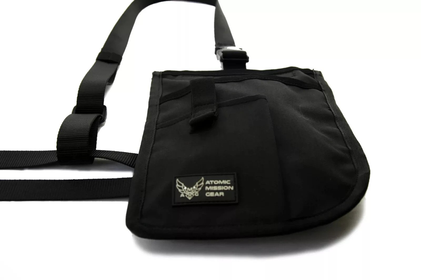 The Atomic Mission Gear Trapazi Bag is a compact and versatile belt bag designed for everyday carry and tactical use. Measuring 10" in height, 7" in width, and 1" in depth, this sleek black bag is made from durable nylon material built to withstand rugged conditions.