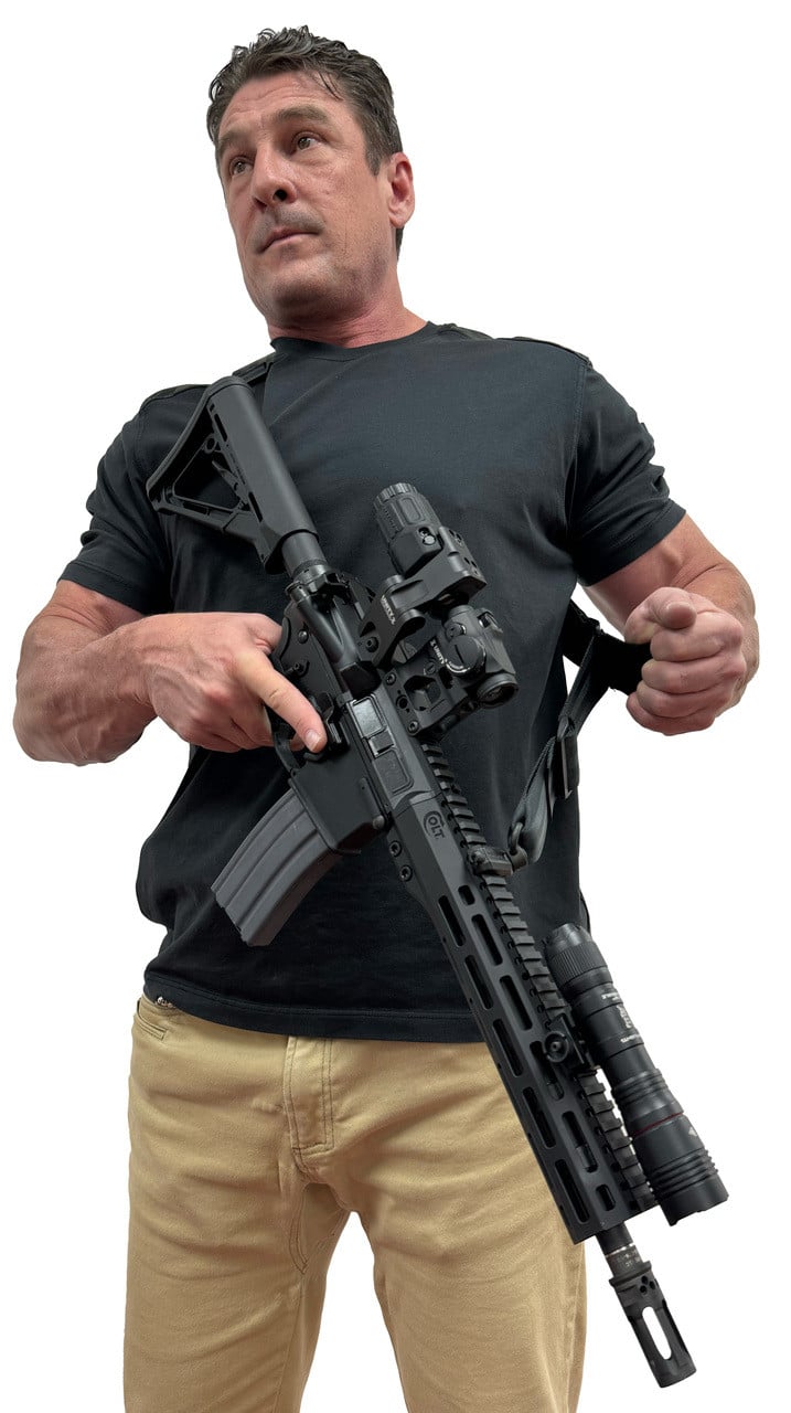- Dedicated 2-point quick-adjust with sling with integrated pull tab. (tab is removable)