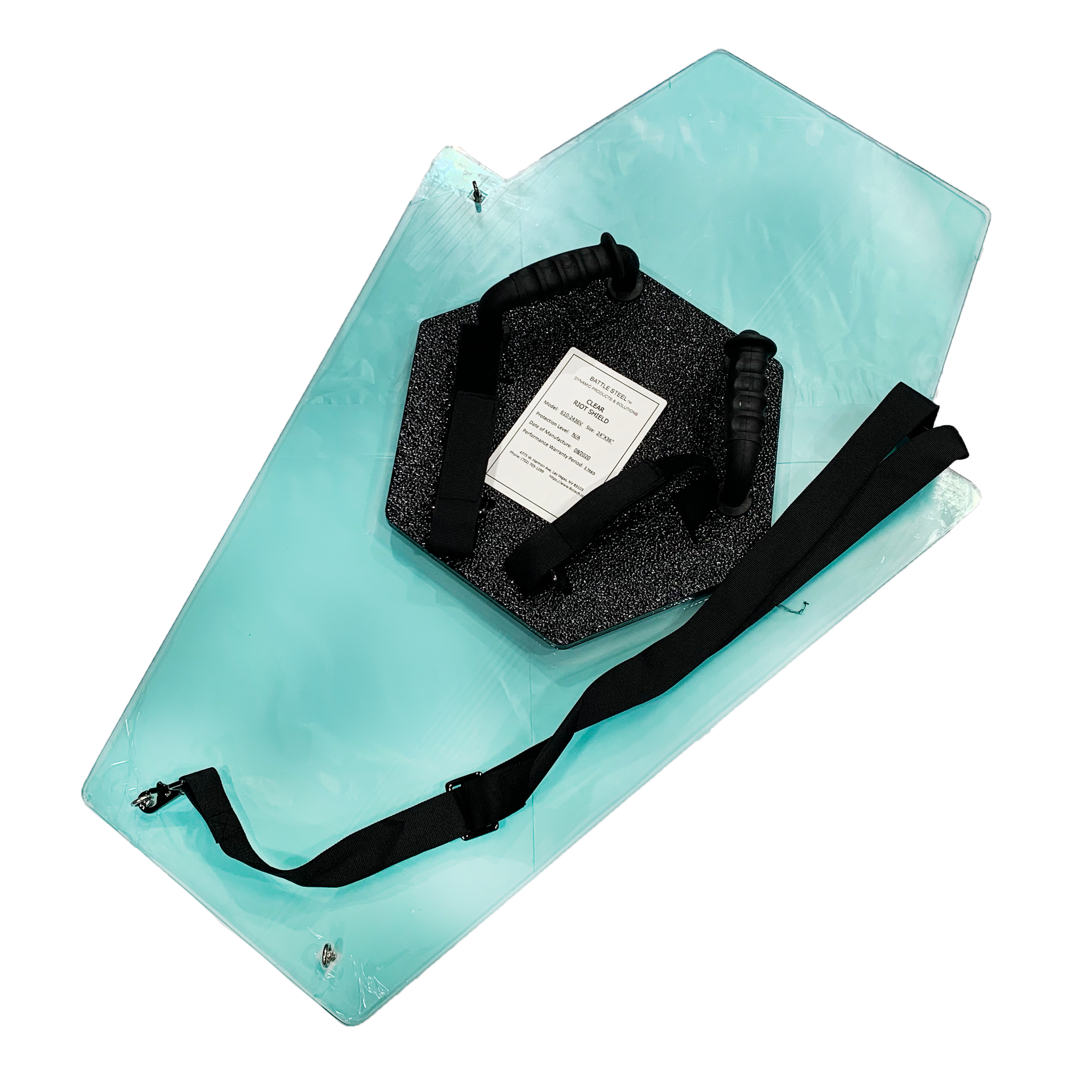 The BattleSteel 24x36 Tactical Riot Shield is a durable and versatile tool for law enforcement, security personnel, and tactical teams. Constructed from heavy duty .250" thick polycarbonate, this shield offers maximum coverage and impact protection. The V-shape design measures 24x36" for ample protection during riot control situations. It features dual ambidextrous handles with adjustable forend straps, along with an ambidextrous weapons rest for added convenience. The shield is equipped with impact protection foam for the forend, and includes a shoulder strap with 4 points of attachment for ease of carrying. Weighing just 9lbs, this shield is lightweight yet sturdy for reliable defense.