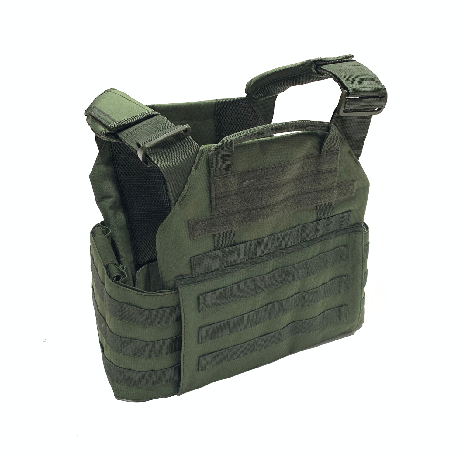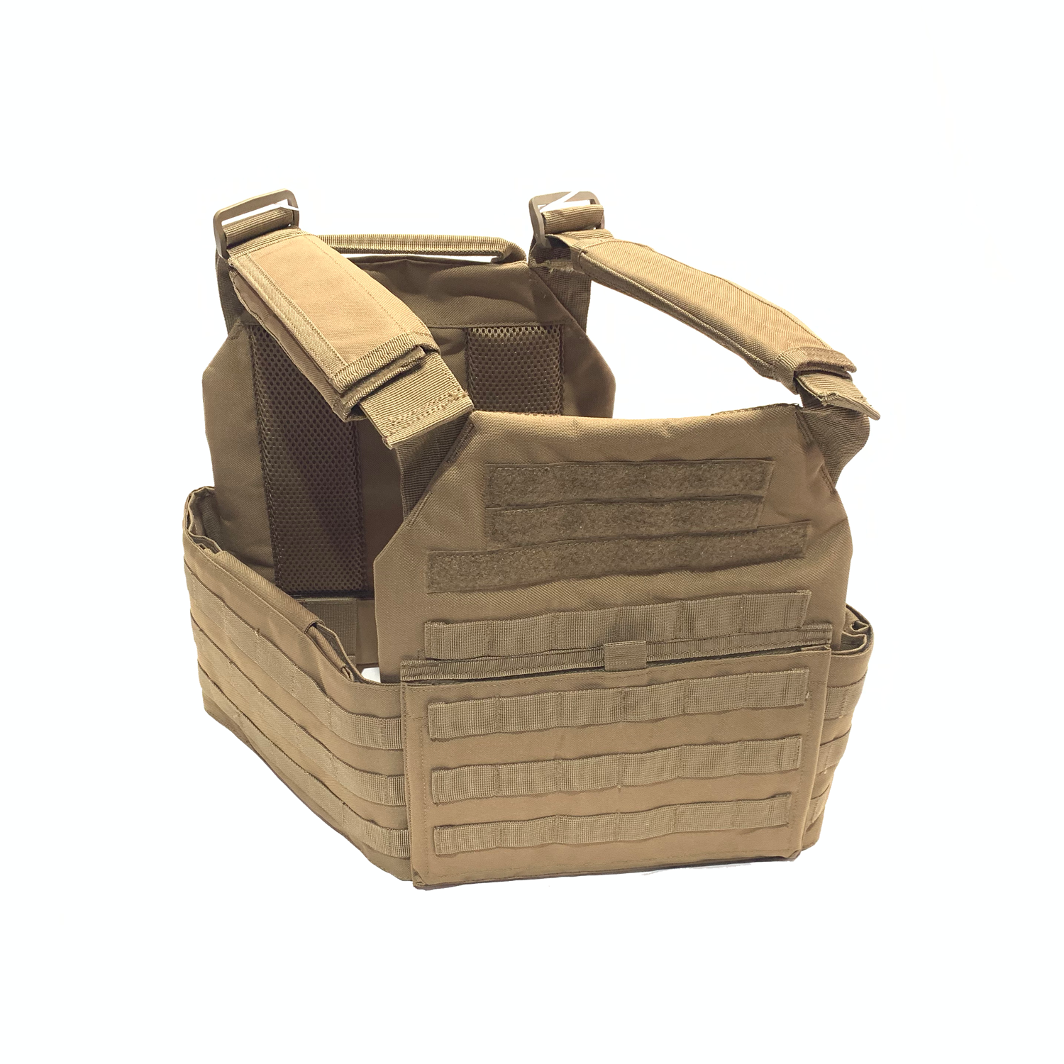The Battle Steel Modular Operator Plate Carrier is designed with a modular platform on all sides for fuctionality and operator cut front and back harness for mobility. It provides easy access to ballistic plates with pull down flaps and includes and emergency drag handle. The carrier accepts up to 10 x 13 plate front and back, and up to 6 x 8 side plates.