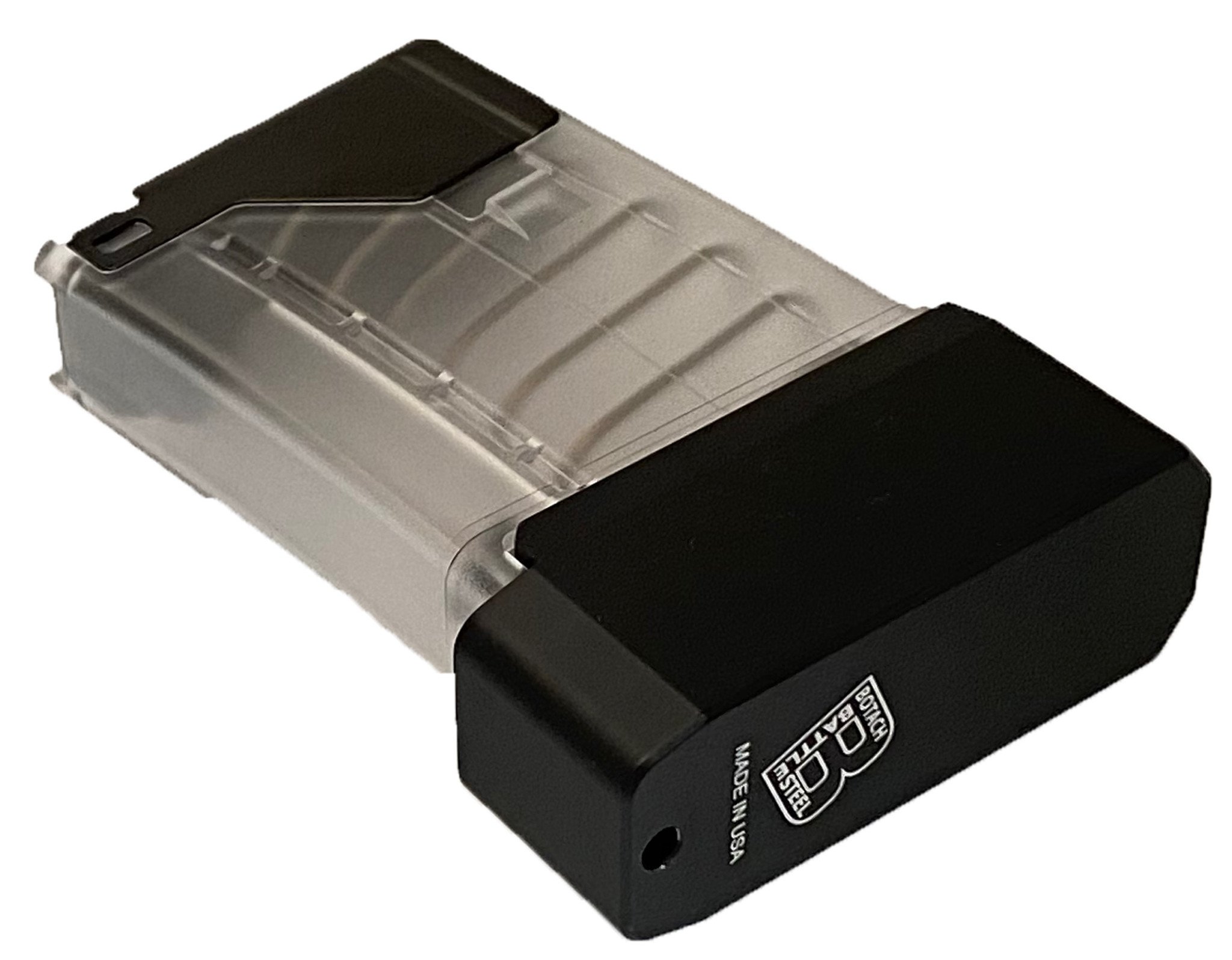 - With the spring depressed fully into the magazine body, slide the +6-magazine extension on to the magazine body and let the spring settle into the base pad.