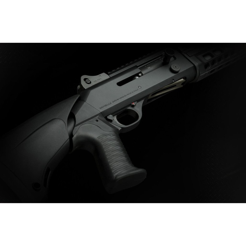 Here is the newest of the new Benelli M4 #11714. This is the brand new model with the 5-Position, straight telescoping stock and the Multirail, modular front rail for picatinny rail sections. This shotgun is in 12 gauge and has an 18.5 inch barrel. The capacity on this shotgun is 7+1. For sights, there are a set of ghost ring sights installed on the receiver and barrel, as well as a picatinny optic mount on the top of the receiver. This shotgun is so new that you may not even be able to find it on Benelli's website. If you are looking for the best of the best when it comes to a tactical shotgun, look no further than this new offering from Benelli!