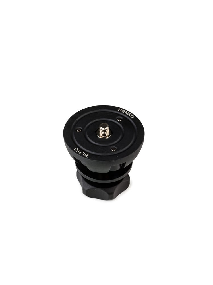 The Benro BL75S is a 75mm half ball adapter equipped with a short tie-down handle. It’s designed to work seamlessly with the HH75AV 75mm video hi-hat and is also compatible with any standard 75mm video tripod bowl.