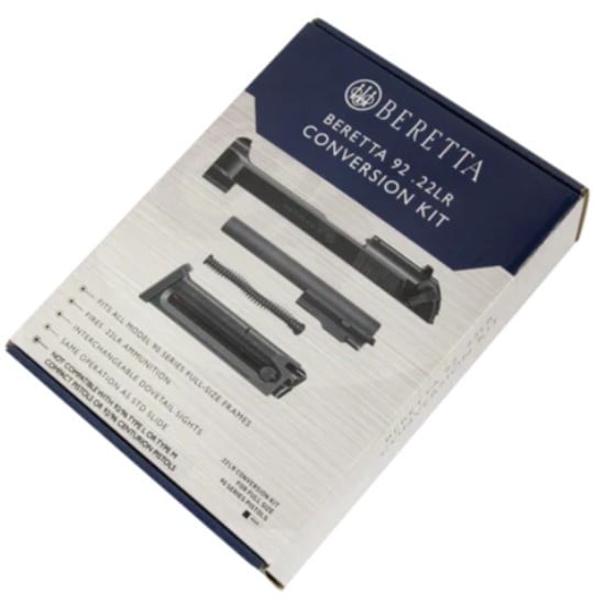 New and improved 92 .22LR Conversion kit fits on all 92F/96F and newer full size 90 series pistols with slide mounted safeties. This kit converts your centerfire 90 series pistol to rimfire for cheap and quiet practice. Kit features full functionality of the standard centerfire slides. The Kit's slide features Vertec style dovetails so standard 92/96 Vertec sights are a direct fit, as are the suppressor height sights from the M9_22 series pistols.