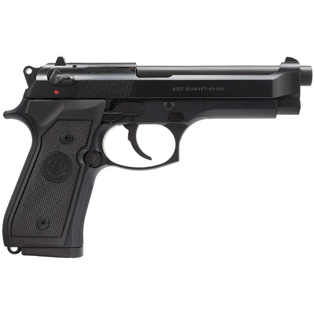 The Beretta M9 offers a variety of tactical features that make it equally safe, easy to use, and dependable for military personnel as well as for home or personal defense. Its reversible magazine release enables the use of either hand for tactical magazine changes, while its ambidextrous safety-decocker makes the pistol flexible for right- or left-handed persons. The Bruniton finish with military-style markings is highly resistant to sweat and corrosion, and a tool-free disassembly latch makes it simple and quick to take the pistol apart for cleaning. The M9 features an external hammer, 3-dot sight system, combat trigger guard, and an open-slide design making the firearm lighter. This CA compliant model has a black finish, 4.9" barrel, and comes with a 10-round magazine.