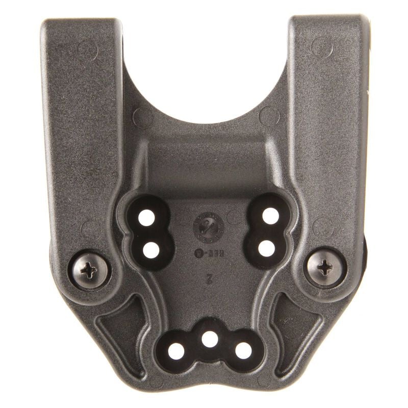 The Mid-Ride Duty Belt Loop With Screws fits any BLACKHAWK injection-molded duty holster, and moves the holster higher on the duty belt.