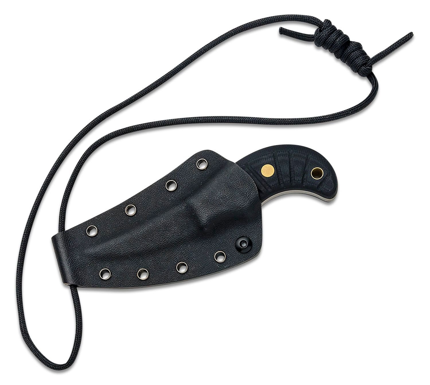 True to the motto "Pimp the Shrimp", the high seas as well as many a menu inspired Hungarian knifemaker Sándor Hegyes to design the Boker Plus Shrimp. The full tang knife is modelled on the shape of a shrimp and combines an unconventional design with surprisingly high practicality. The ergonomically optimized handle with black G10 scales fits securely in the hand even under the most adverse conditions, while the Persian blade made of D2 scores with high edge retention and stability for all cutting tasks. Decorative accents are set by the brass studs in the handle, of which the rear hollow stud can be used as a lanyard hole. Supplied with an adaptable Kydex sheath, a lanyard and a little breeze of sea air.