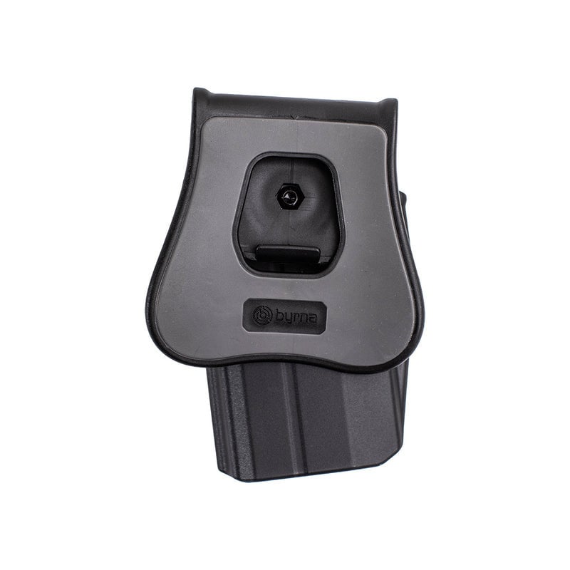 The LEVEL II Holster is molded in modern design and built tough to withstand the harshest environments. Compatible with all Byrna pistol-style launchers without an accessory attached.