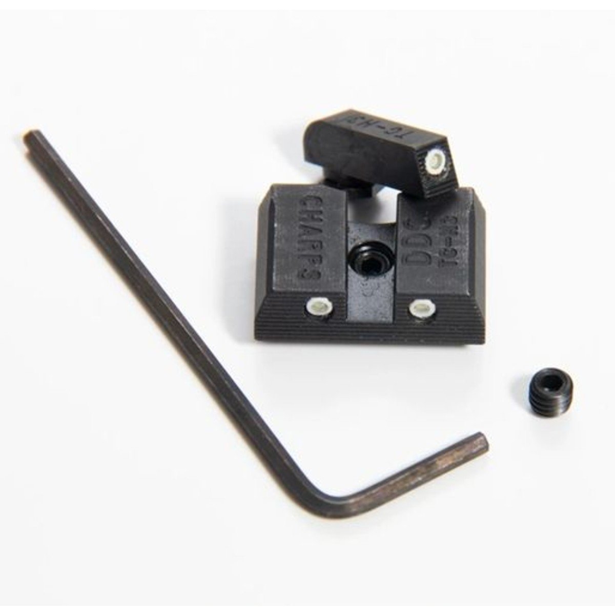 The Increased Rear Sight Retention; The CHARPS™ Rear Sights are designed with a press-fitting dovetail that requires a Handgun Rear Sight Press for installation. The CHARPS™ are further designed with a Set Screw to add retention and rigidity of the Rear Sight placement, helping to ensure that the sight does not move when it is driven against an object.