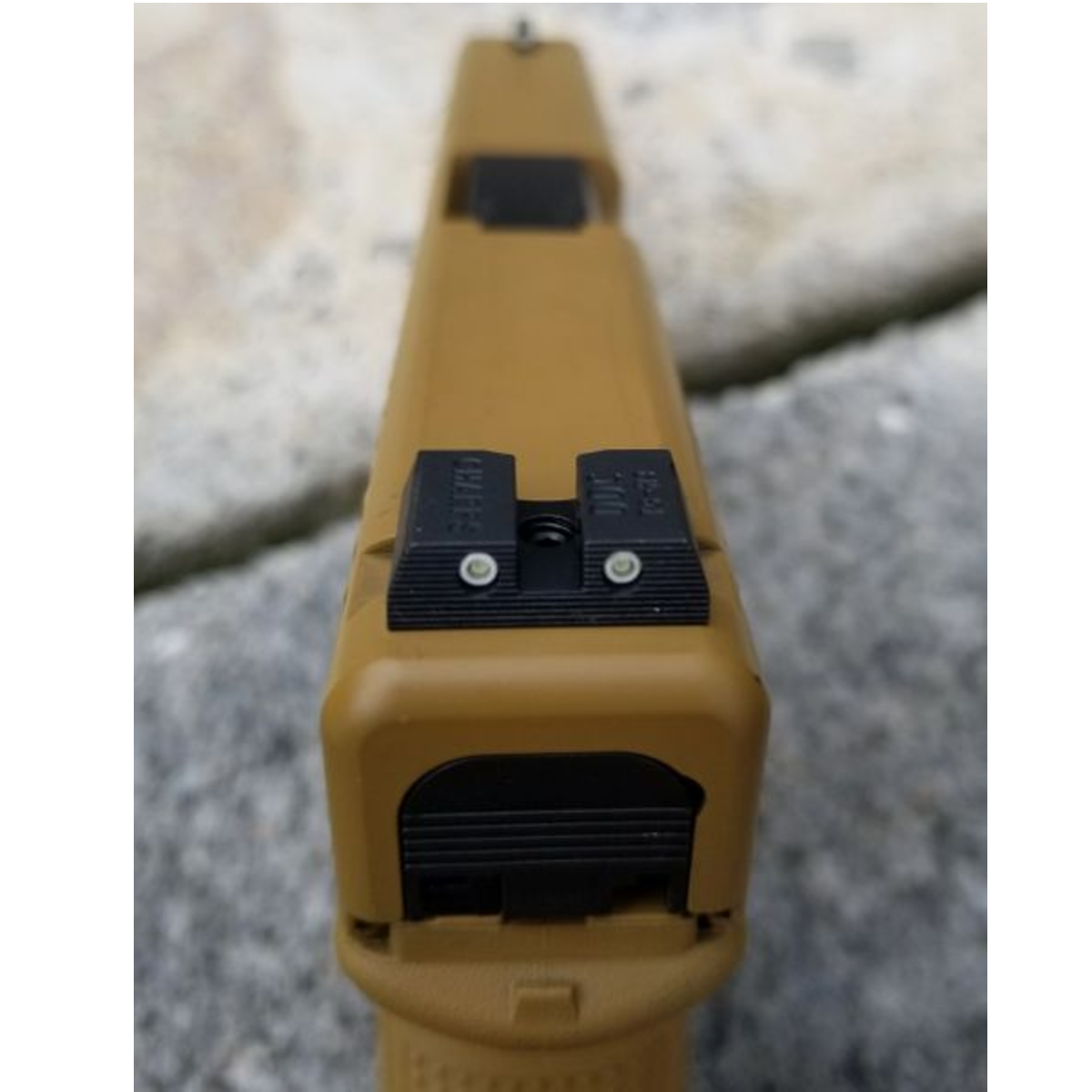 The Enhanced Sight Picture; An incredibly clearer sight picture designed to enhance target acquisition and accuracy. Factory heights of the Front and Rear Sights maintain the standards for Point of Aim and Point of Impact, while the Enhanced Sight Picture helps reduce your time to target increasing the speed and accuracy of your sight alignment when acquiring your target and hold over. This was achieved by increasing the Rear Notch width and reducing the Front Sight width a specific amount, then angling the cut of Rear Notch just right.