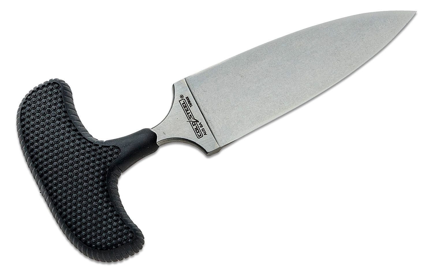 Cold Steel has been making push knives for over a quarter century. Over the years we have continually refined our designs, discarding some features and enhancing others. Constantly striving to produce the best push knife in the world. Our Safe Maker series represents the pinnacle of our learning, experience, testing, and development. The blades, shafts, and 'T' shaped tangs are fashioned from one solid piece of Japanese AUS8A Stainless Steel with a stone washed finish, and then subsequently vacuum heat treated and sub-zero quenched for added strength and performance. A textured Kray-Ex handle encapsulates the tang and part of the shaft for added comfort and security. Available in two sizes; each Safe Maker includes an easily concealable and sturdy Secure-Ex boot/belt sheath.