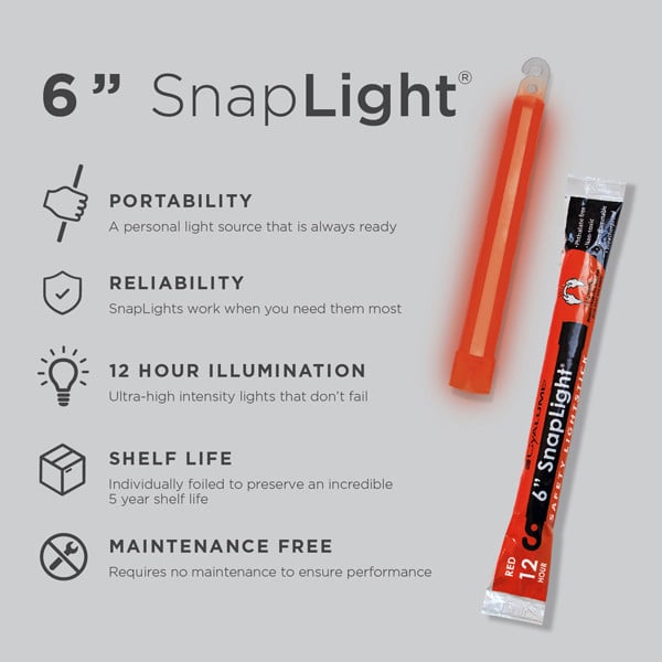 Red commercial SnapLights are utterly bright and reliable. These 6” red light sticks have been a cornerstone of emergency preparedness, survivalist and safety plans for decades thanks to their unmatched quality and performance.