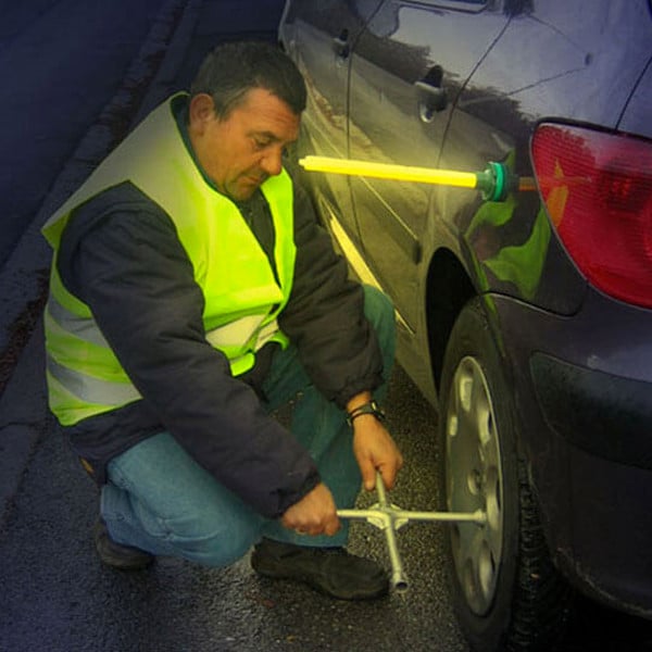 From working in confined spaces to changing a tire, the magnetic light stick holder acts as a second pair of hands. Simply activate light stick then twist into magnetic base holder. Attach it to vehicles, steel pipe, door frames and a variety of other surfaces..