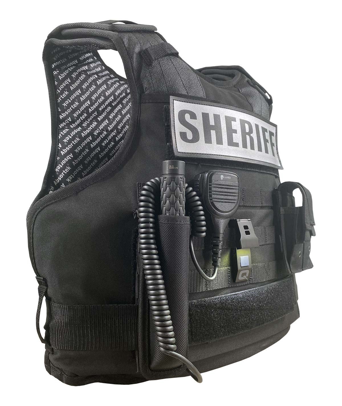 - Two separate thigh protectors do not obstruct the user’s uniformed duty belt or the holster/sidearm
