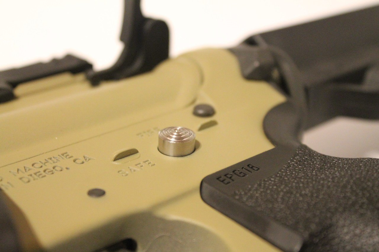 Quickly take your AR15/M4/AR10 from safety to ready to fire and back to safe with the simple push of a button. With no rotation necessary, no shifting of the shooters hand needed, this is the fastest safety selector to engage and dis-engage on the market!