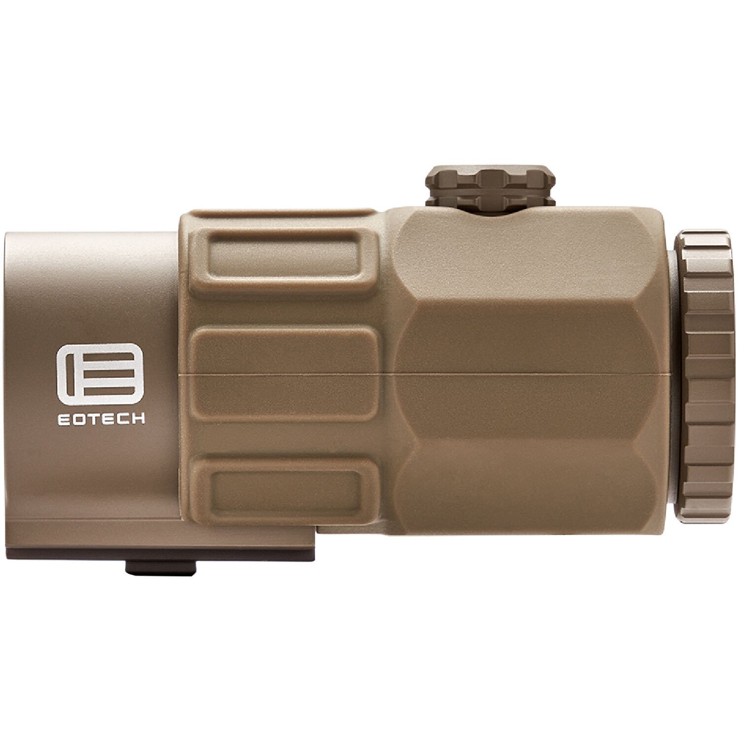 Boost the magnification of your Eotech holographic weapon sight with the EOTech G45 5x Magnifier No Mount. This riflescope magnifier, designed to be mounted on a Weaver or Picatinny rail behind your sight, easily swings into position for enhanced targeting capabilities. With 2.6" of eye relief, a 4.4° angle of view, and tool-free vertical and horizontal adjustments, the G45 magnified optic is a versatile addition to your setup. Weighing 12.8 ounces and featuring a fog-proof design that can be submerged in 33' of water, this magnifier is both durable and reliable. Enjoy precision with the tool-free windage and elevation adjustments, and easily swing the 5x magnifier into place or to the side when not needed. Includes the G45 Magnifier, operator manual, warranty card, and protective case.