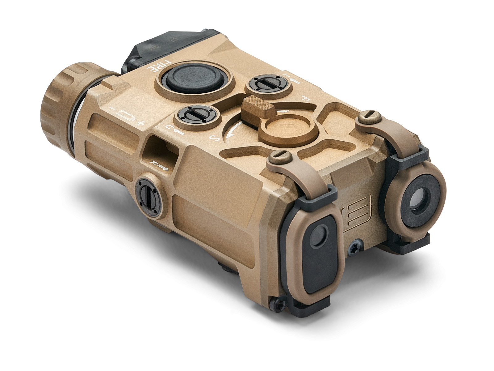 The new EOTech On-Gun Laser (OGL) is offered in a standard power (MIL/LE) model. Powered by a single CR123 lithium battery, the OGL offers up to 9 hours of continuous run time. The all-aluminum housing offers extreme durability, and its compact size is similar to a standard deck of playing cards. The IR and Visible lasers are optically aligned, so zeroing is simple and easy. The OGL has a unique sliding lever that controls the beam divergence of the IR illuminator, making adjustments from spot to flood fast and easily, even under pressure.