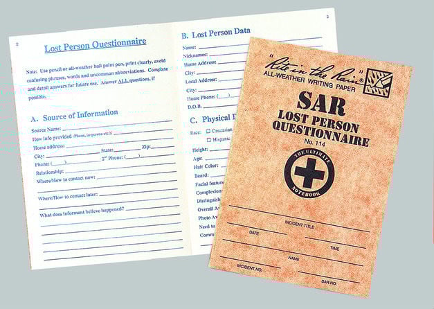 Rite In The Rain SAR Lost Person Questionaire