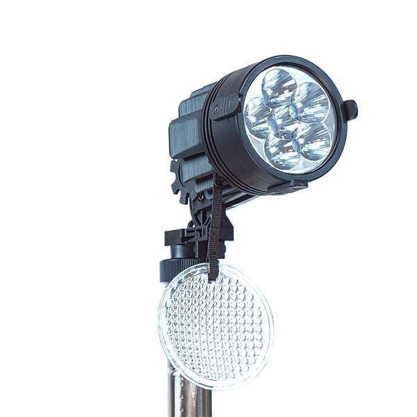 FoxFury Nomad® Prime Video System for use in video, film, and photography has a Speed Ring Adaptor and Soft Box. Combination Area Light and Spotlight, rugged, all-weather and waterproof, up to 24 hours of battery life, overhead tripod light, solo operation and 20-second deployment, battery life indicator, bazooka light option, easy to clean. anchor strap for high wind environments.