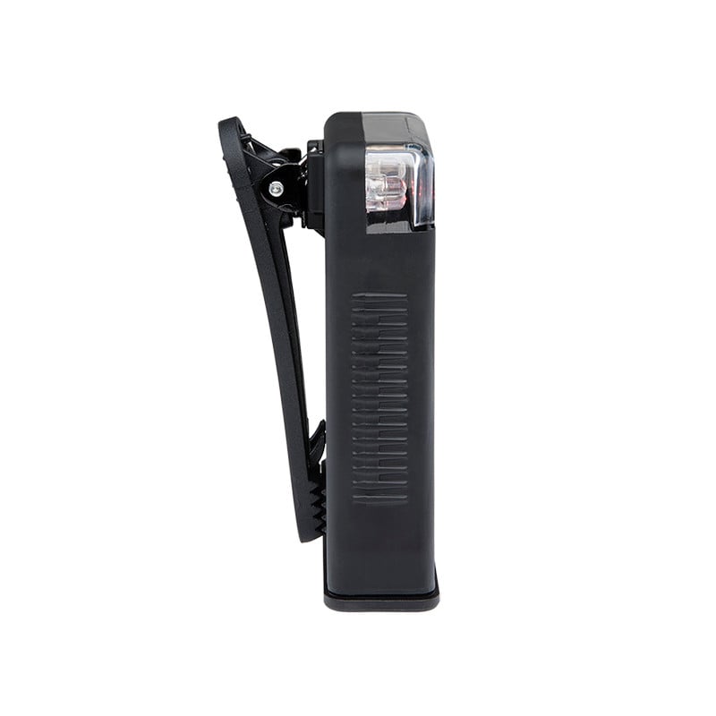 The FoxFury Scout Clip Light in Black with White and Red LEDs is a versatile clip light that serves as a utility light, task light, search light, safety beacon, and more. It’s rugged, works in all weather, and is fully submersible. Scout models have a secure J-Clip that enables multi-wear use options. The light runs on 3 AA batteries and can provide 49 lumens for up to 60 hours.