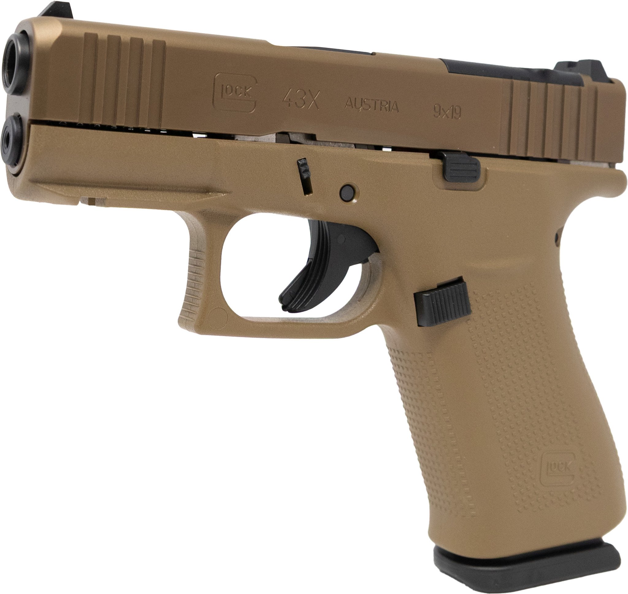 The G43X MOS has a short subcompact barrel length and a comfortably balanced, versatile compact-size grip with a minimal profile. It incorporates elements of the Slimline series such as the short trigger distance, a frame with a built-in beavertail as seen on the G43 and the G42, a reversible magazine catch. This model has the incredibly accurate, match-grade GLOCK Marksman Barrel (GMB) of the Gen5 series. The G43X MOS also features precision-milled front serrations.