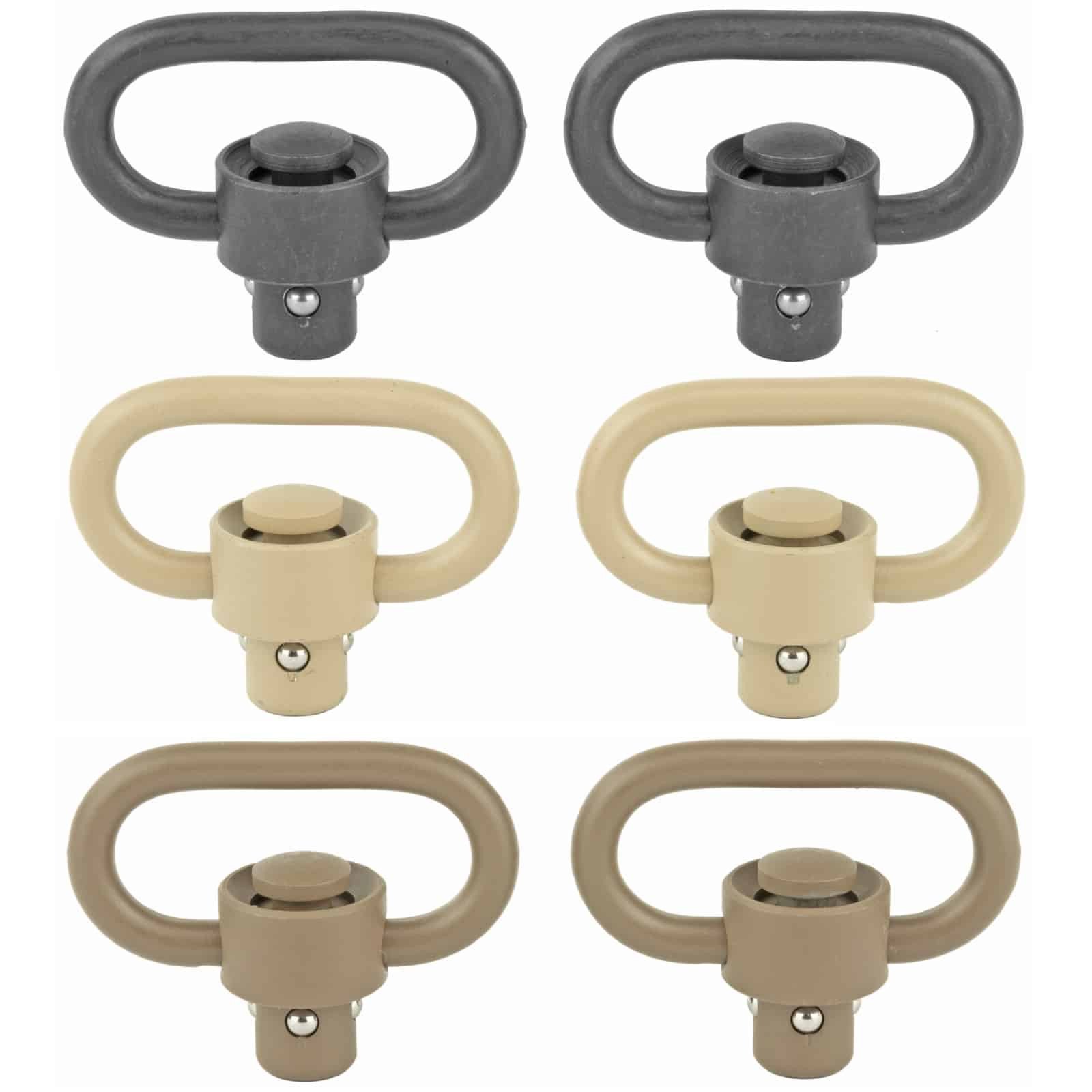 Featuring extremely tight machining tolerances and pull tested up to 450-pounds of tension, this heavy-duty, stainless steel swivel set utilizes a non-glare CERAKOTE™ finish to eliminate reflection. This product is proudly made in the USA and provides a rock solid performance under the most demanding conditions.