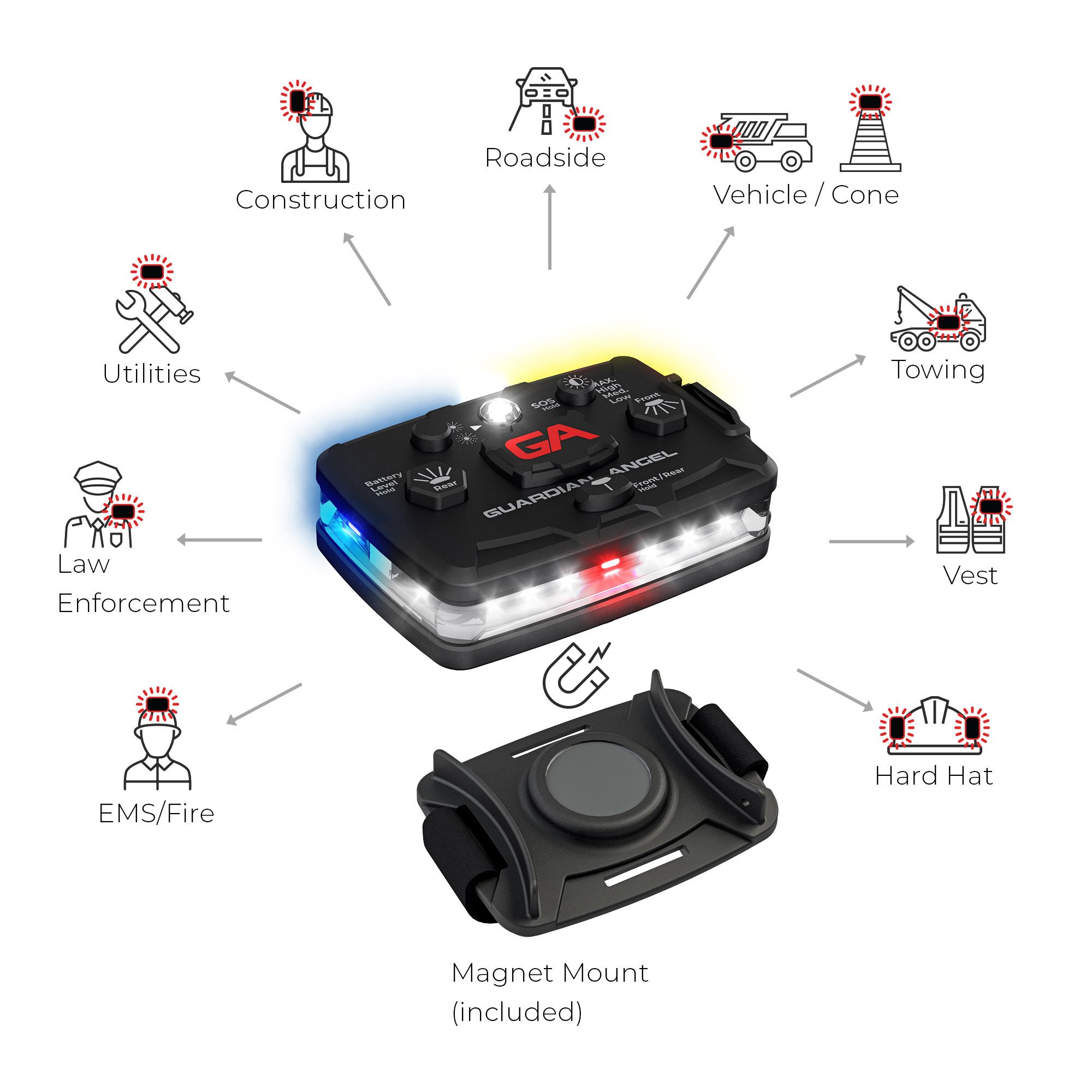 - Patented built-in Magnet Mounting System works with ALL Guardian Angel mounts