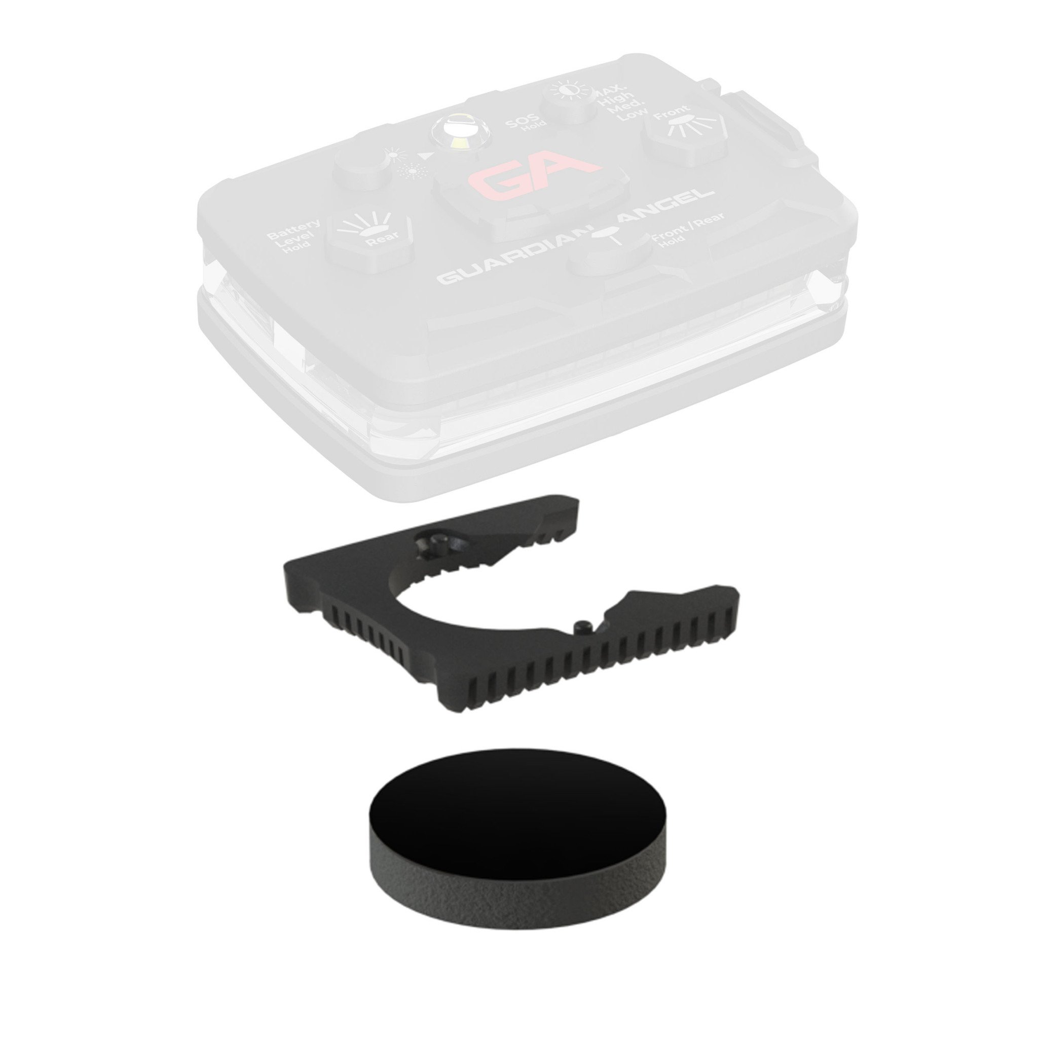- Magnetically attaches any device to any hard hat.