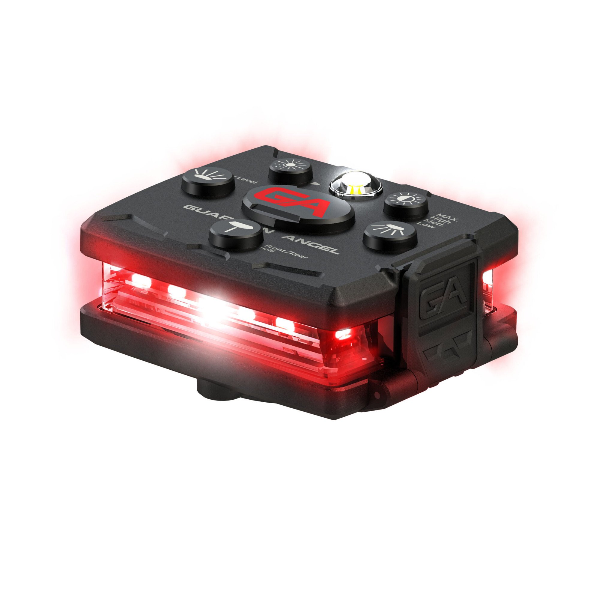 - Maximum Visibility: With 13 high-output LEDs, the Guardian Angel Micro Series keeps you visible from up to 3+ miles. With 360° lighting, others can see you from all sides. Four brightness settings, multiple flash patterns, steady burn option and Emergency Mode, ensure others can see you when needed. With 6 white LEDs on the front, 6 orange LEDs on the rear, this device features a hands-free white flood light, a white work light, and a white top light.
