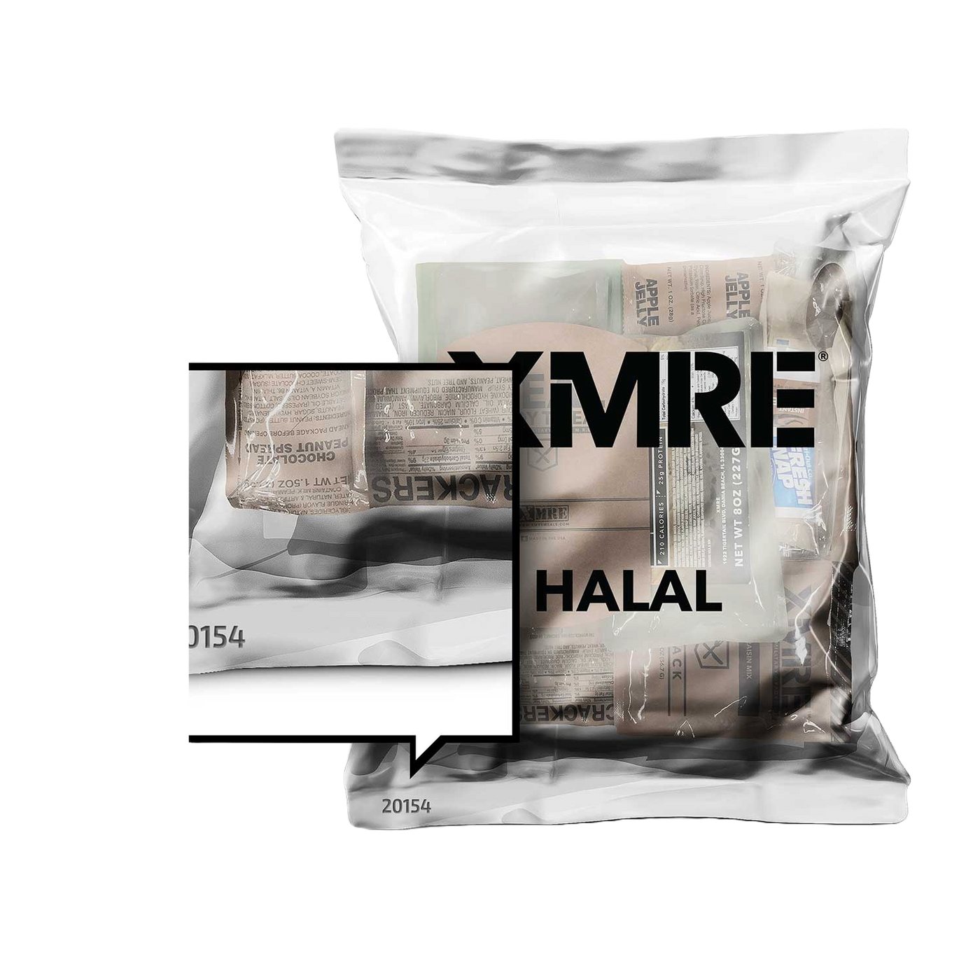 The HALAL 1000 by XMRE® provides 800 to 1,200 calories of high-quality shelf stable components. All our Halal-style components are fully cooked, so they can be eaten right out of the pouch and are compliant with all standards in accordance to Sharia Laws & Regulations.
