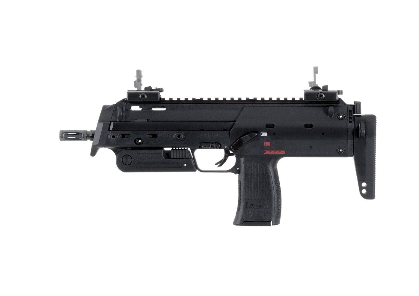 The MP7 handles like a pistol yet allows targets to be engaged like a rifle. With its 7-inch barrel, the HK MP7A1 is capable of firing 10-shot semiautomatic groups at 45 meters of less than 2 inches. Unlike competing designs, the handgun-like appearance and fully ambidextrous design of the MP7A1 ensures immediate acceptance by all users. The MP7A1 is manufactured predominantly of carbon fiber reinforced polymer with embedded metal components where needed. The weapon can be field stripped in seconds without tools and requires little cleaning due to its unique gas system. The lethal 4.6 mm x 30 cartridge produces minimal felt recoil (50% of a 9 mm NATO round) — assuring that multiple hits are easily obtainable in all modes of fire — incapacitating the target through penetration and permanent tissue destruction. The MP7A1 is fitted with a removable full length MIL-STD-1913 (Picatinny) rail on the top of the receiver for mounting a variety of optional targeting devices.