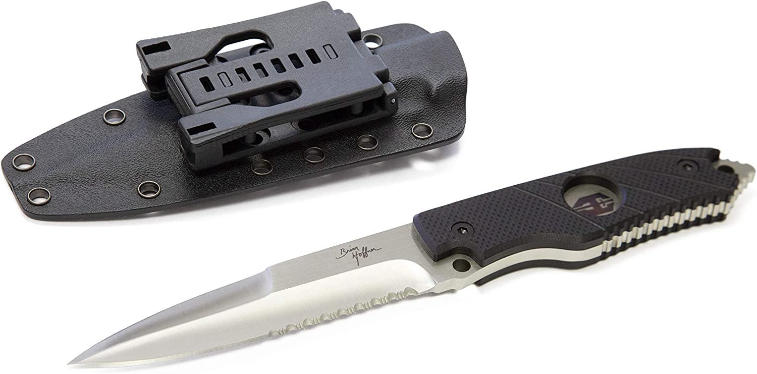 Hoffners Fixed Blades come with stonewash black or satin 440c stainless steel full tang blades with your choice of G10 handle and matching Kydex sheath in black, khaki, or olive green.