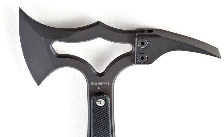 Made of hardened S-7 tool steel with a black Cerakoted finish to match the tomahawk, this Pry Bar attachment adds improved versatility to an already impressive design. Includes mounting hardware for extremely easy attachment using a Hex bit.