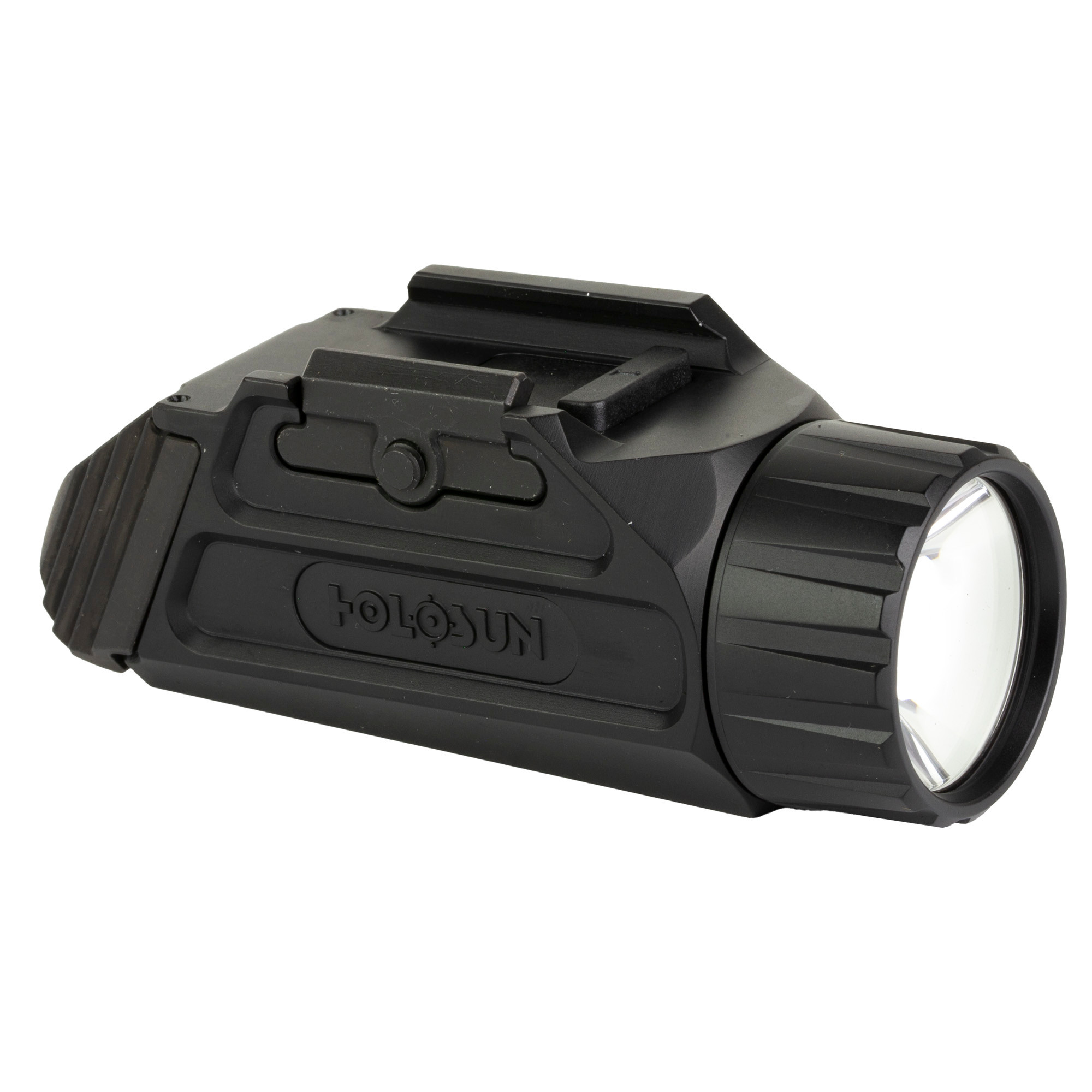 The Holosun P.ID High Candela 800 Lumen Weapon Mounted Light is a compact and ruggedly designed white light that ensures Positive IDentification of threats in low-light settings. Precision-engineered with high candela output, this pistol-mounted light easily attaches to firearms with a Picatinny rail. Crafted from durable 7075 aluminum, the P.ID features 800/400 lumens with up to 60 minutes of battery life, powered by a rechargeable flat top 18350 battery. Its waterproof, shock-resistant housing is compatible with common duty holsters and includes a magnetic charging port for effortless recharging. Take on the dark with confidence using the powerful P.ID HC.