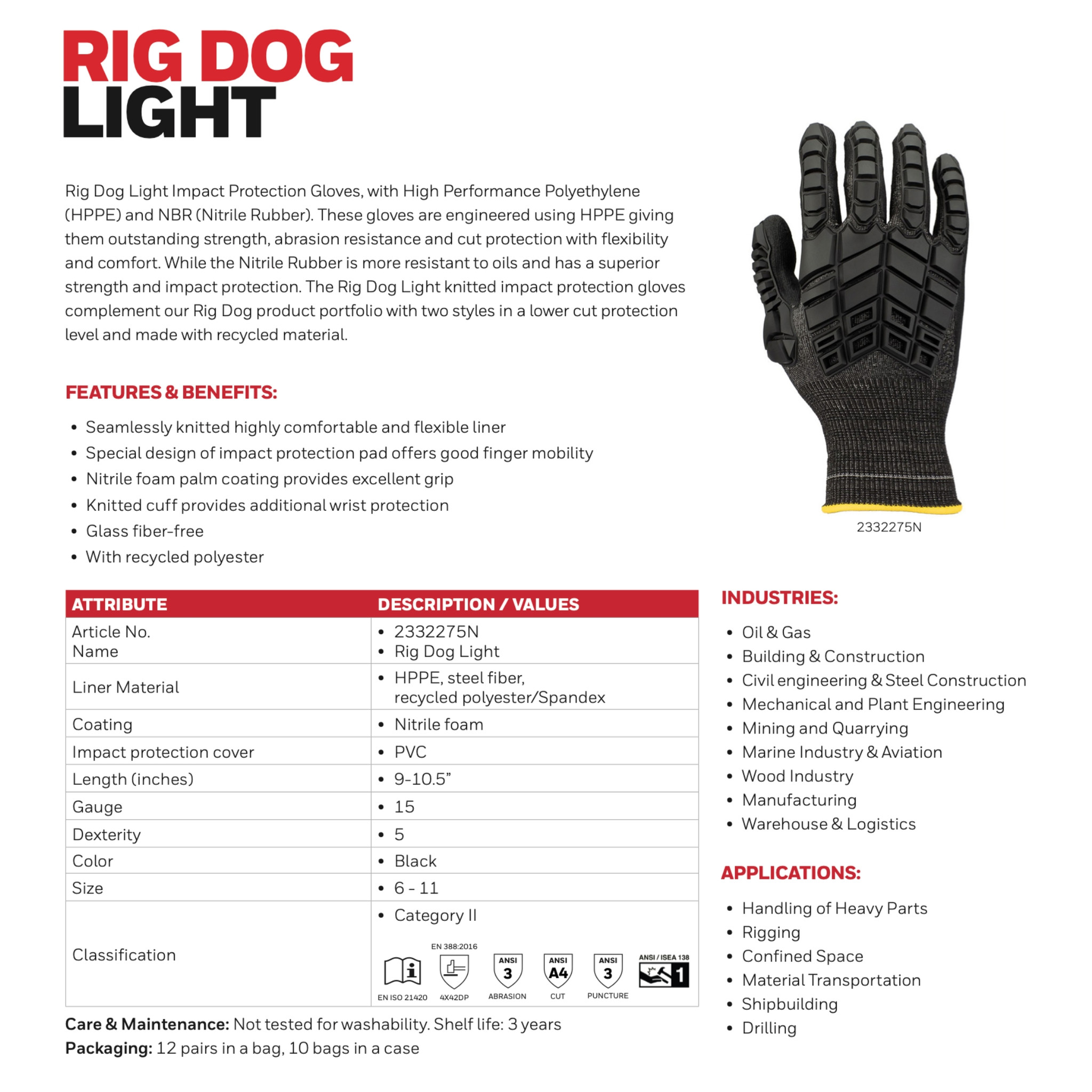 strength and impact protection. The Rig Dog Light knitted impact protection gloves