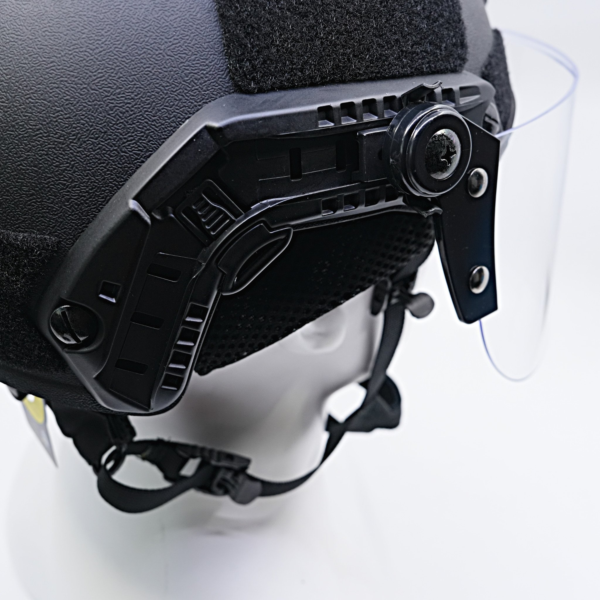 The FAST high-cut bump shell is built from rugged ABS polymer to guard against environmental impacts, abrasions, and bumps in dynamic operational settings. The integrated 4.8" pivoting polycarbonate face shield deploys rapidly and locks securely into position, providing wide-angle facial coverage against debris, splatter, and environmental hazards — all without obstructing your line of sight.