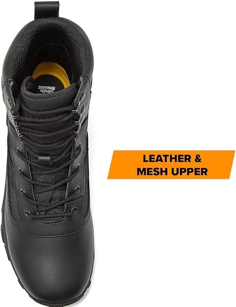 LIGHTWEIGHT & DURABLE MILITARY BOOTS MEN - With all the style and function of police boots and army boots for men, they have a gusseted tongue that keeps sand, dirt, and debris out for added protection and are the ideal mens black work boots.