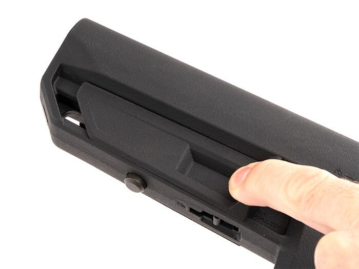 The Trigger Release combines with a newly developed takedown lever that also makes the MOE TR stock our easiest stock to install and remove on your firearm. That means no more leveraging a high-tension spring to mount and remove your stock; the innovative, one-handed toolless takedown lever allows quick and easy installation and removal. It includes a “padlock” icon to indicate whether the stock is locked or unlocked. Once the lever is positioned in the “locked” position, it can’t be removed from the receiver extension, ensuring it won’t slide off when making LOP adjustments. The takedown lever is also partially recessed to minimize snagging while still permitting easy access to select it when necessary.