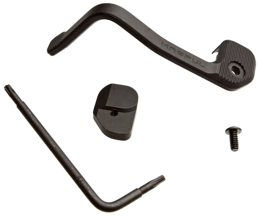 The Magpul BAD Lever (Battery Assist Device) enhances the functionality of AR15/M16 platforms by significantly improving bolt catch speed and efficiency. Engineered from the operational insights of the Magpul Dynamics team, it offers quick access for reloading and malfunction clearing. Its right-side paddle allows seamless manipulation from the fire control position using the trigger finger, ideal for both right and left-handed users. Crafted from durable, milspec-anodized aluminum, this device attaches easily without permanent modifications. Featuring a low-profile design, it maintains traditional bolt catch operation, while ensuring unobstructed trigger access. Complete with all necessary mounting hardware, it's a must-have upgrade for any serious shooter.