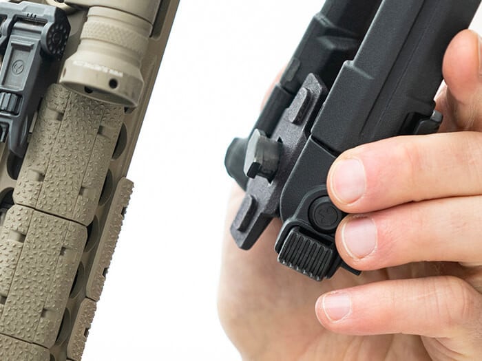 We’ve offered a variety of bipods for quite some time, but none have attached as simply and quickly as the MOE QD Bipod for M-LOK. This new bipod provides shooters a quick-attach and detach function when using guns with an M-LOK hand guard or forend; by speeding up the attachment process via the integral attachment knob, you can get support when firing faster than ever before. To attach the bipod, simply insert the M-LOK stud into the M-LOK slot, rotate the bipod 45° counterclockwise so the stud is perpendicular to the M-LOK slot, and tighten the adjustment knob to securely fasten against the forend. No tools required.