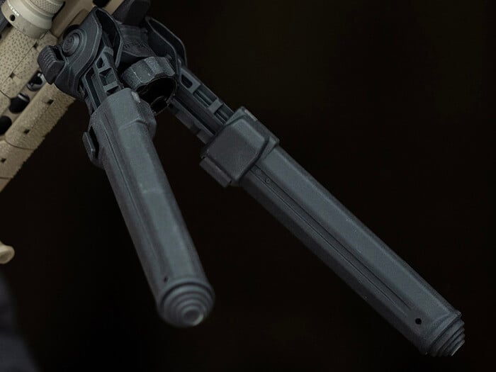 VERSATILE LEGS AND FEET - Soft, stepped, non-slip rubber feet grip a wide array of shooting surfaces; the feet are also easily removed with a roll-pin punch. Legs accept most Atlas-pattern bipod replaceable feet to best match the needs of your environment
