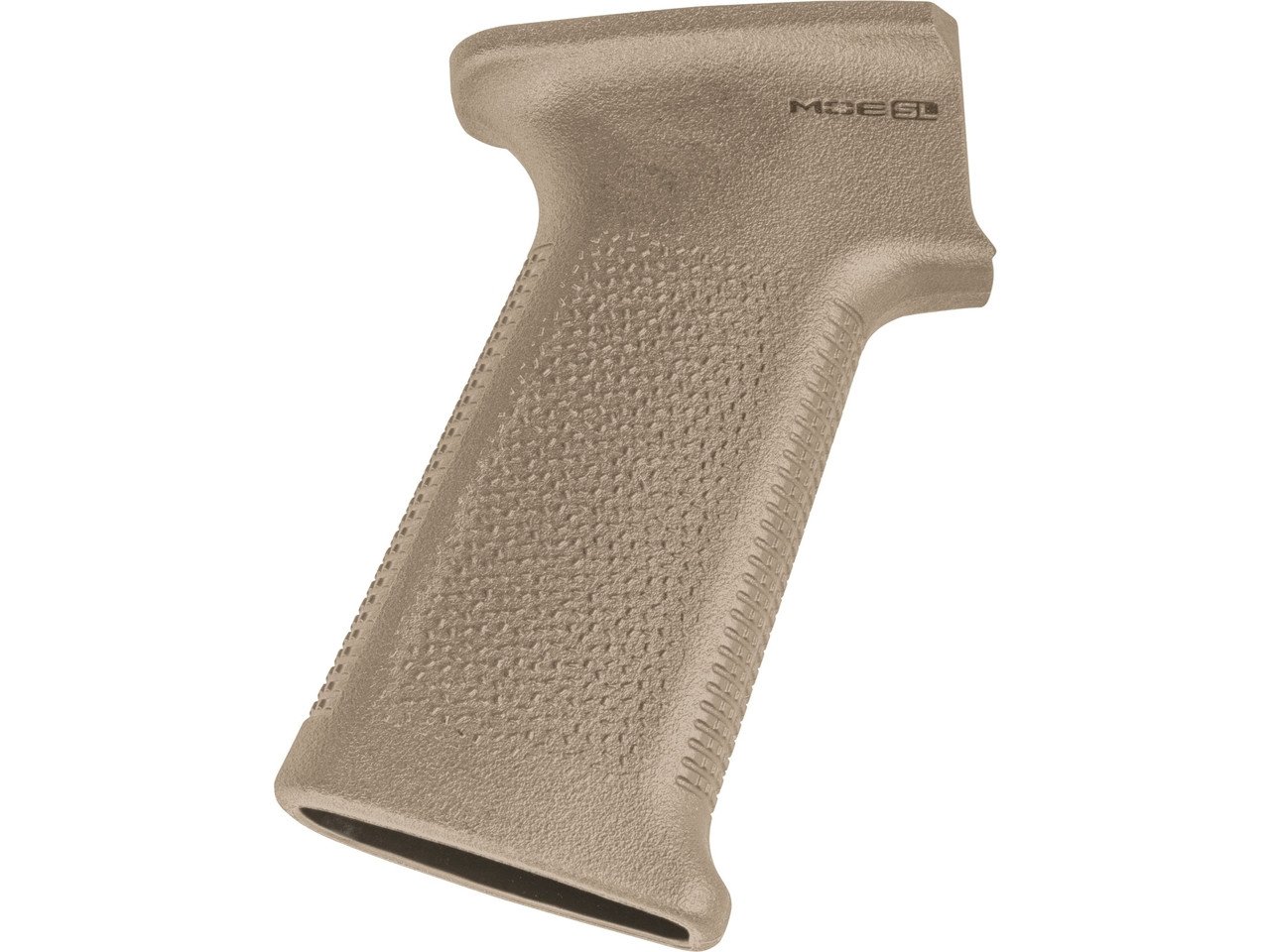 The Magpul MOE SL AK47/AK74 Grip is a premium upgrade designed for optimal performance on shorter length of pull (LOP) firearms. Featuring a more vertical angle, it enhances maneuverability and brings the primary hand closer to the shooter’s body. The grip offers a slimline feel with a smaller size, combined with an aggressive TSP texture for superior weapon control in any condition. Its compatibility with both milled and stamped receivers, including those with reinforcement plates, makes it highly versatile. Lightweight at just 2.6 oz., this grip counts as one US compliance part for 922r, ensuring adherence to regulations. Made in the USA.