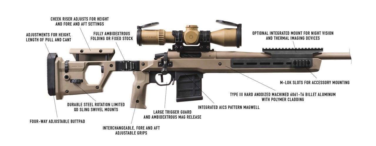 - Integrated AICS pattern magazine well optimized for PMAG® 5 & PMAG® 10 7.62 AC™ magazines as well as most other AICS pattern short action magazines